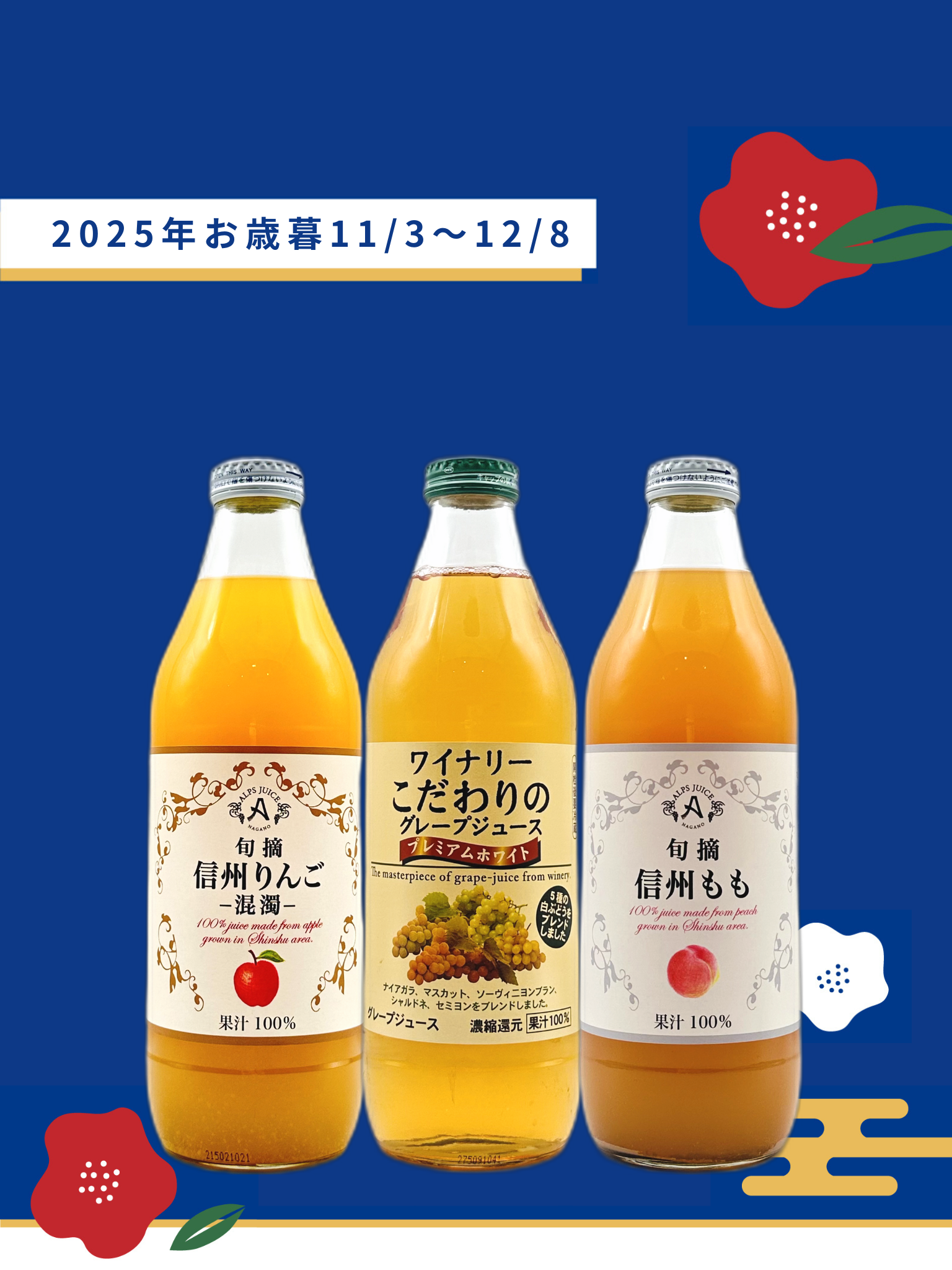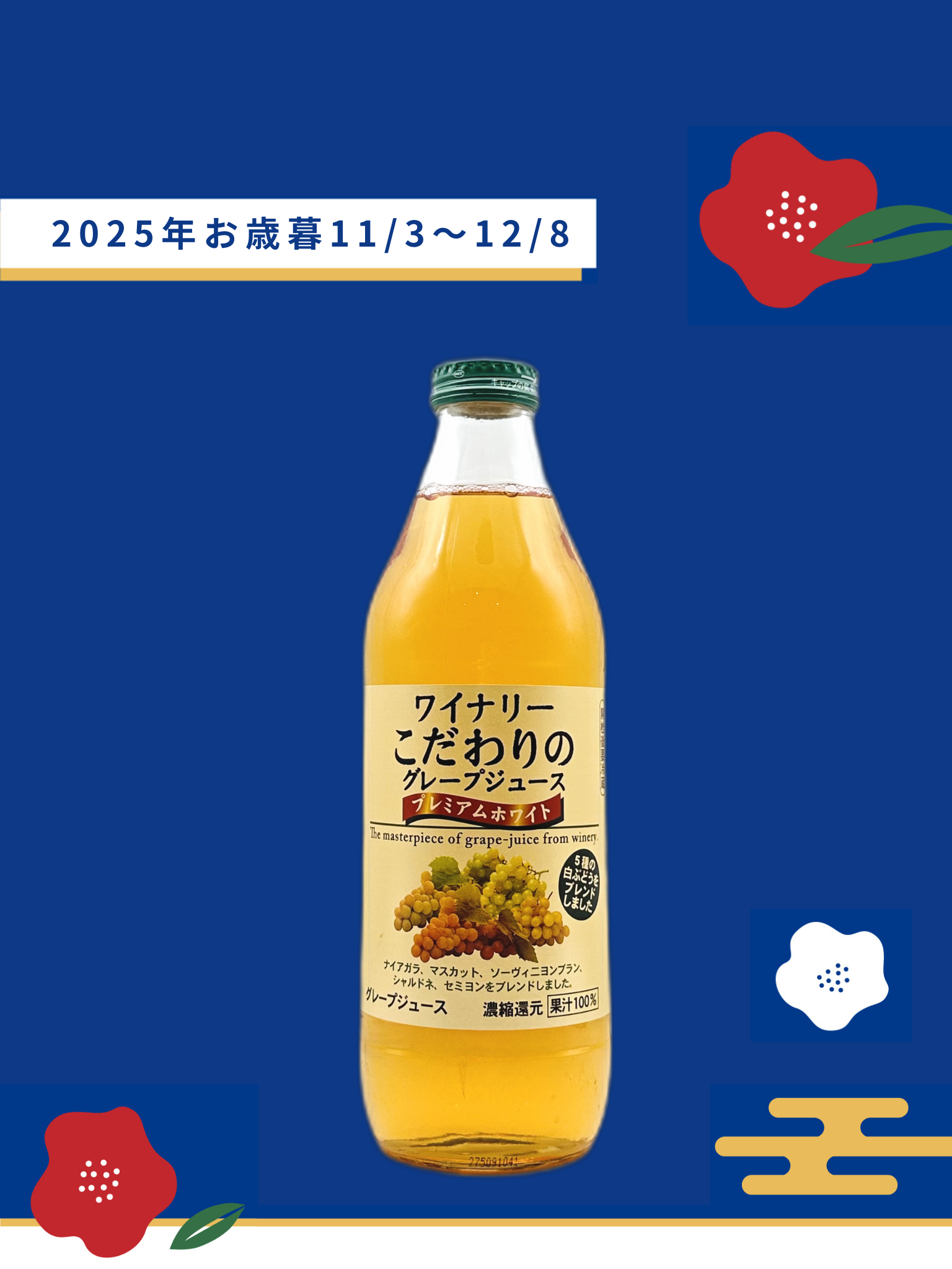 ナイアガラとマスカットに加え、ワイン用ブドウをブレンドした果汁100%ジュース。フルーティーで上品な香りと甘さのバランスが絶妙で、深みのある芳醇な味わいが楽しめます。